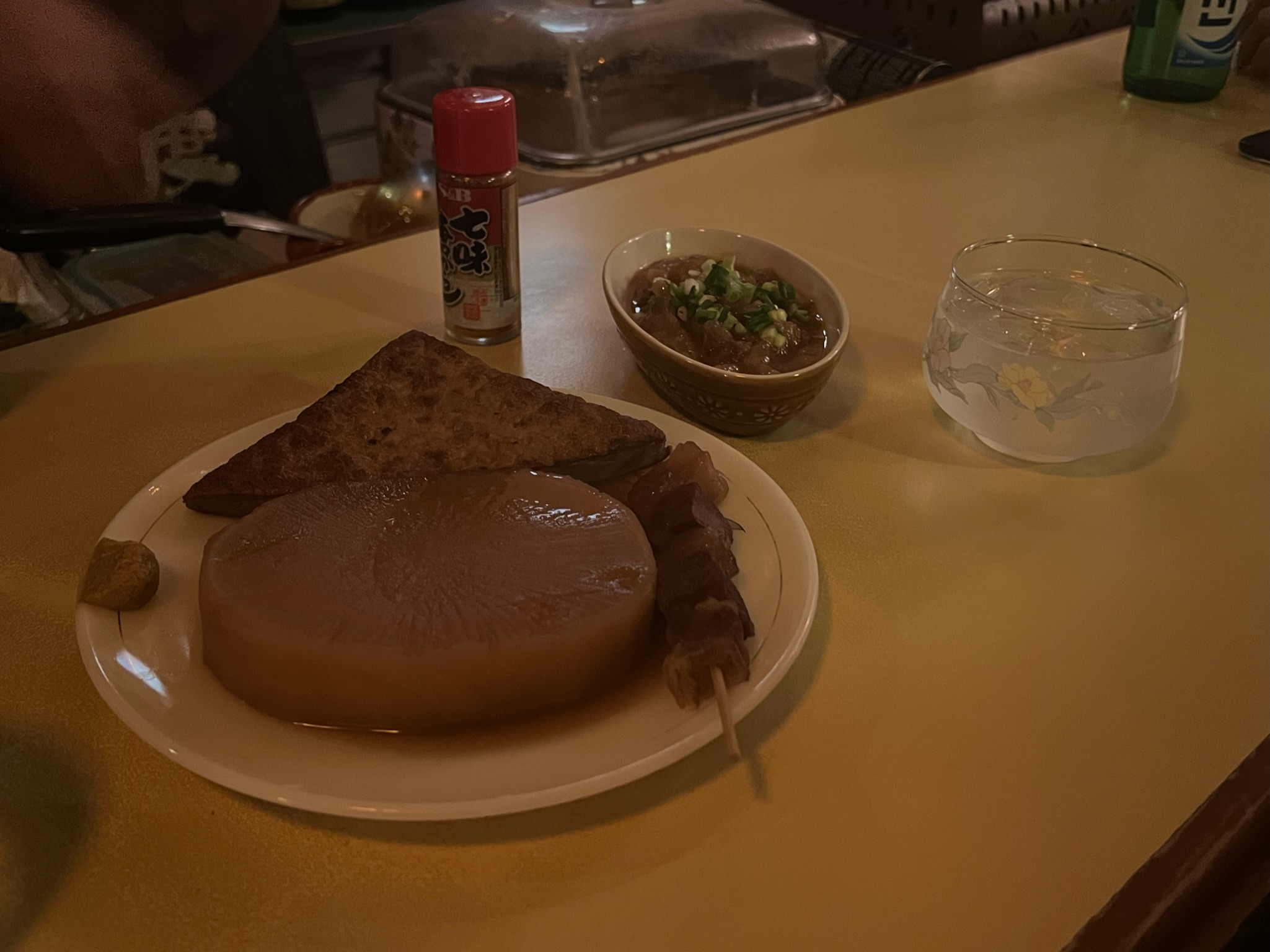 오뎅 국물이 잘 스며든 무와 두부, 스지 도테야끼가 나왔습니다