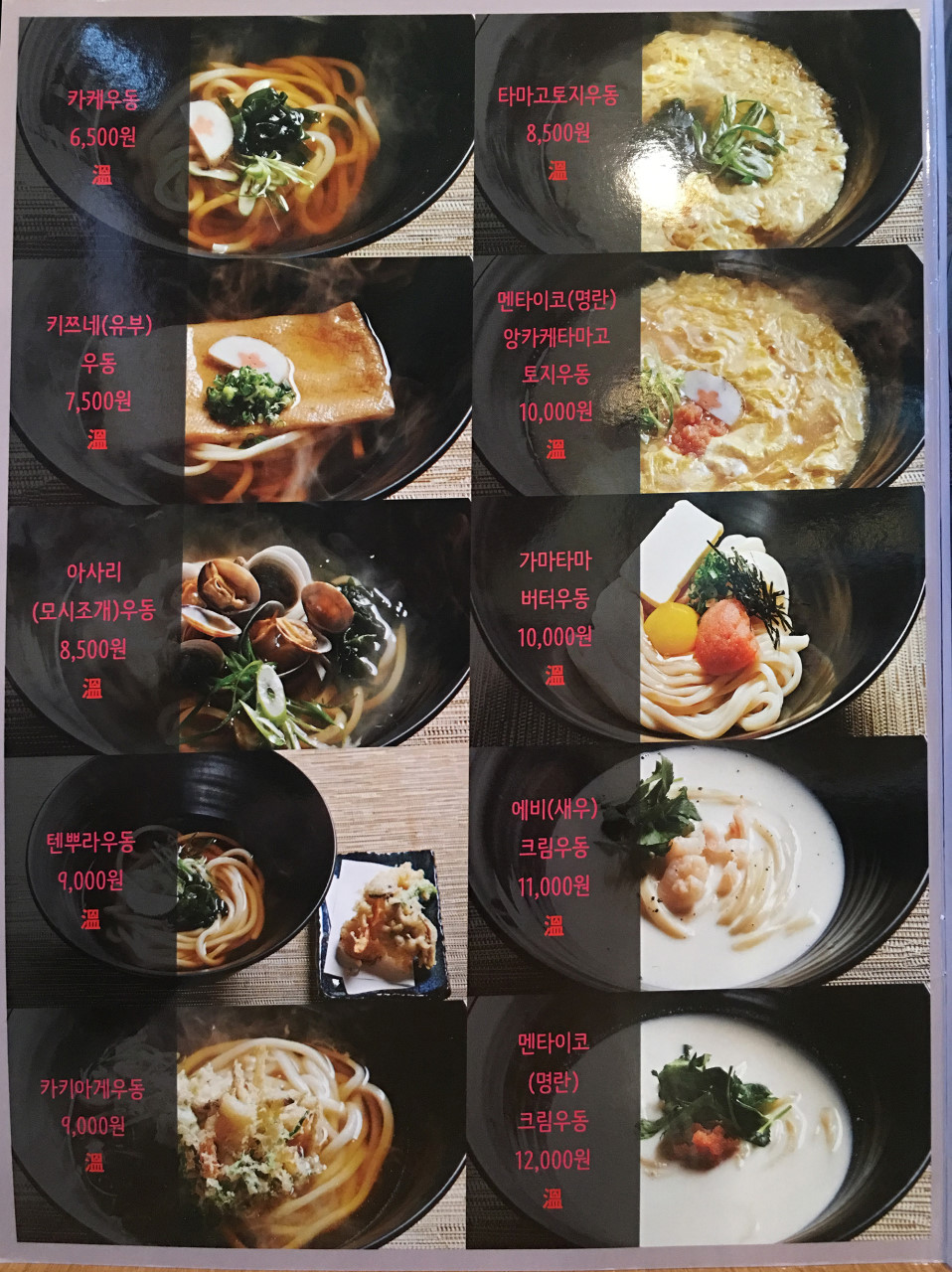 우동 카덴은 크게 따뜻한 우동과 차가운 우동 그리고 사이드메뉴가 있습니다